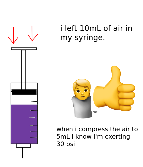 Bubble compression is a technique that can be applied to all forms of syringe filtration. Itâs hard to know how hard weâre pushing on a syringe, and thereby pushing on the filter. If we leave some air in the syringe we can easily monitor how much that air is being compressed. Then we know how much pressure weâre exerting. Use the Boyleâs Law Calculatorâ to help you determine how much pressure youâre exerting.